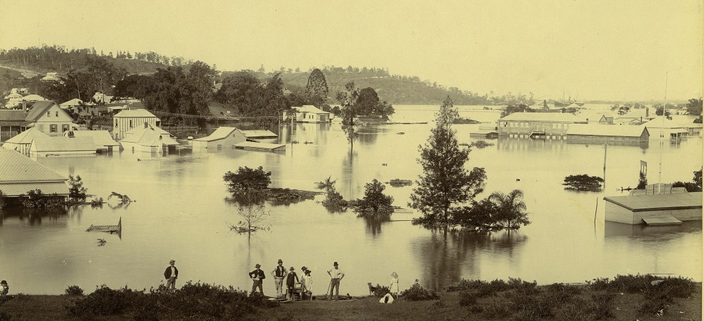 Panorama over Breakfast Creek, 1883. (State Library of Queensland.)Jordan Terrace residents survey the damage from the 1893 floods. (State Library of Queensland.)The original Exhibition Building in 1877. (State Library of Queensland.)Bowen Hills Slaughter Yards, 1910. (Brisbane City Council Images.)The Exhibition Buildings and (old) Queensland Museum, 1900. (Brisbane City Council Images.)