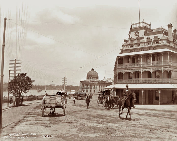 Customs House 1889Courier Office, 1880.Central Railway Station, 1910.National Hotel, 1898.The School of Arts.Queensland Club c 1879.Supreme Court Building.