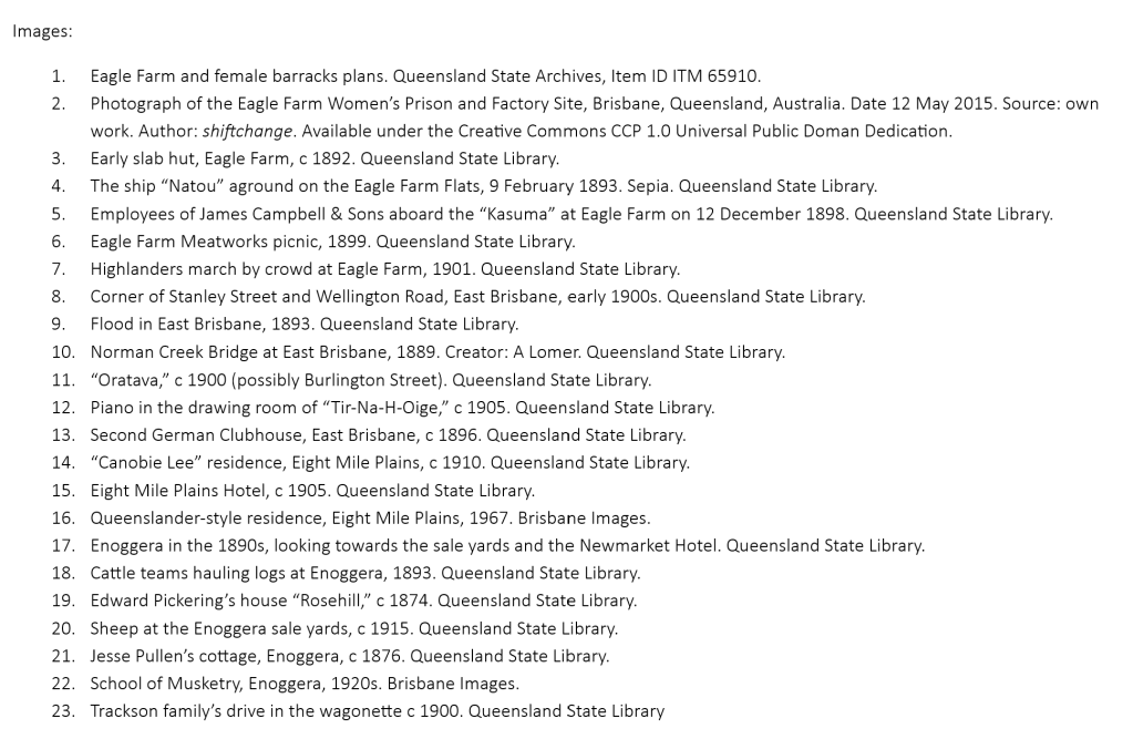 Left: the sale yards. Centre: Jesse Pullen’s cottage. Right: The Enoggera Musketry School.