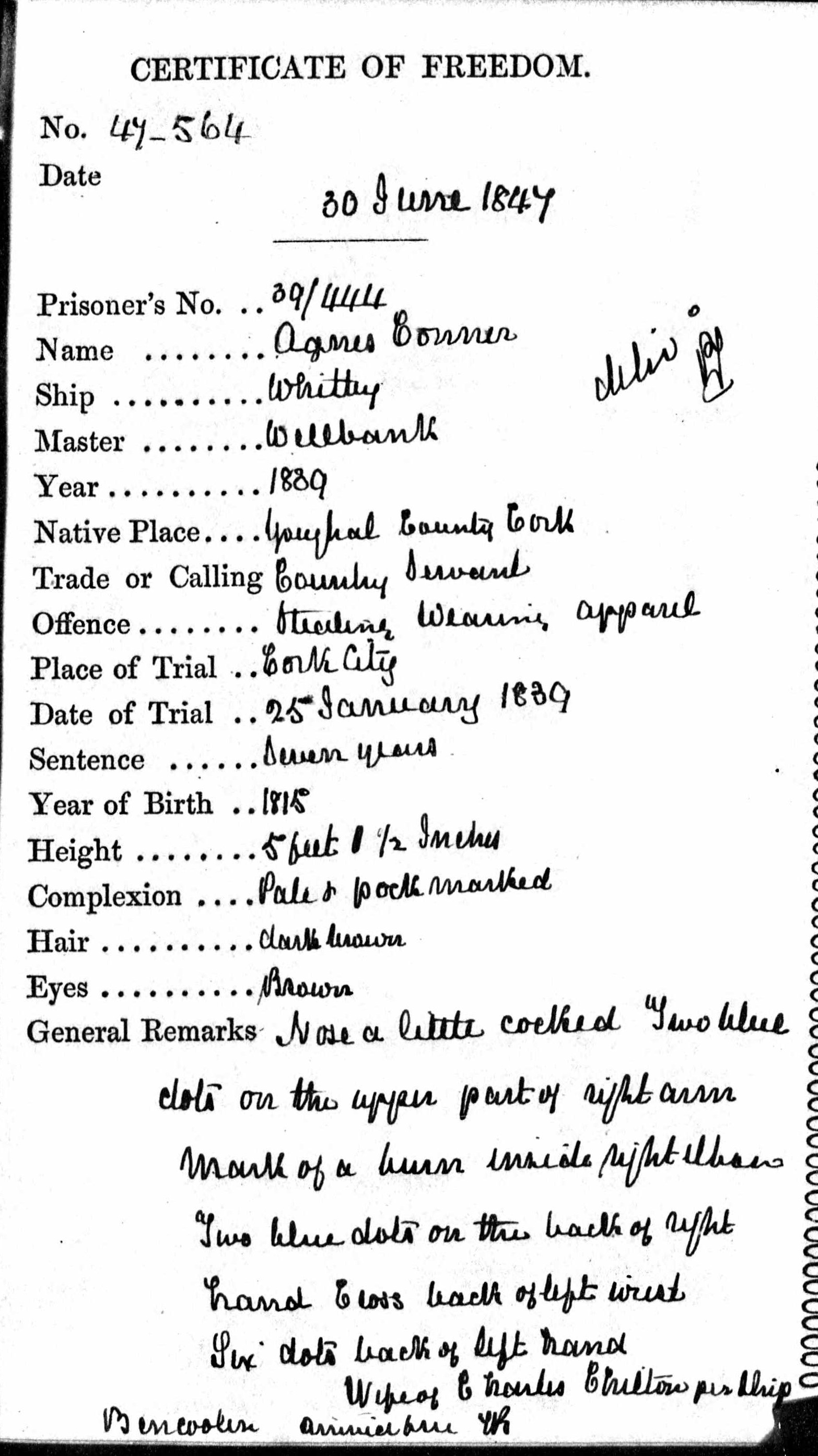 [i] Agnes got off lightly in the indent descriptions. Other ladies on board had facial scars, scrofula marks and hairy moles and upper lips described in humiliating detail