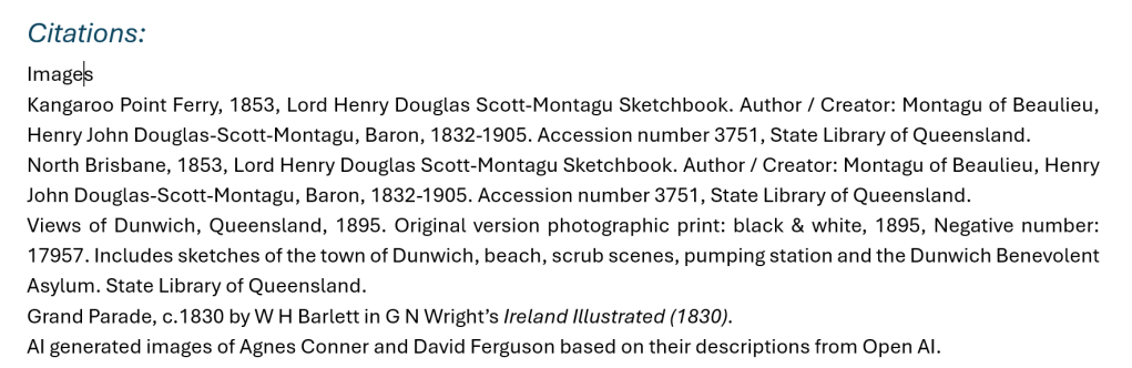 Her Majesty’s liege people were safe for the next fortnight, as David Ferguson struggled to obtain the £10[iv] and two other sureties to release Agnes from durance vile. She left Brisbane Gaol on 5 April 1851, and her behaviour there had been orderly, probably because no alcoholic beverages had been served.