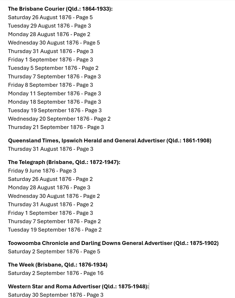 The Western Star’s correspondent[3] claimed that the special jury had been unanimous against Mrs Lansfield, and eleven to one as to Bonney’s guilt. “They imagined that they must find both prisoners guilty, or not guilty, and if they only had the sense to come into court and ask the Judge if they could find one guilty without the other, Mrs Lansfield would be in Toowoomba Gaol probably by this time.”