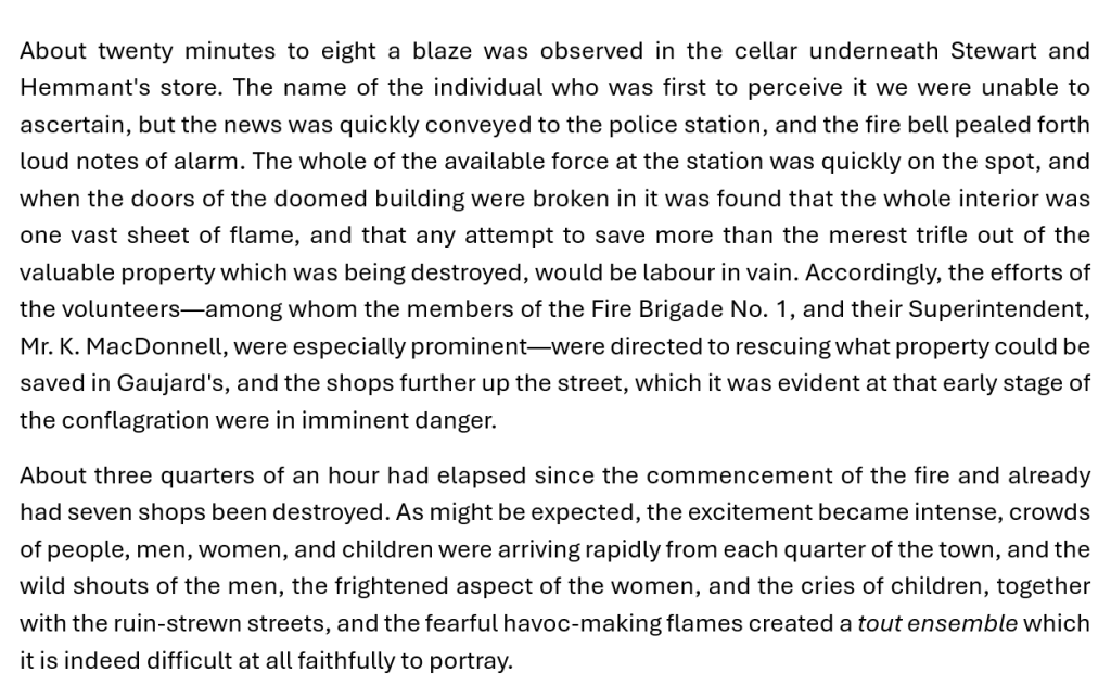 Brisbane had a lot of jerrybuilt wooden houses and stores in the early days – all crammed cheek by jowl along Queen Street. In 1864, there were two catastrophic fires, and haunting photographs of them show the devastation they caused.