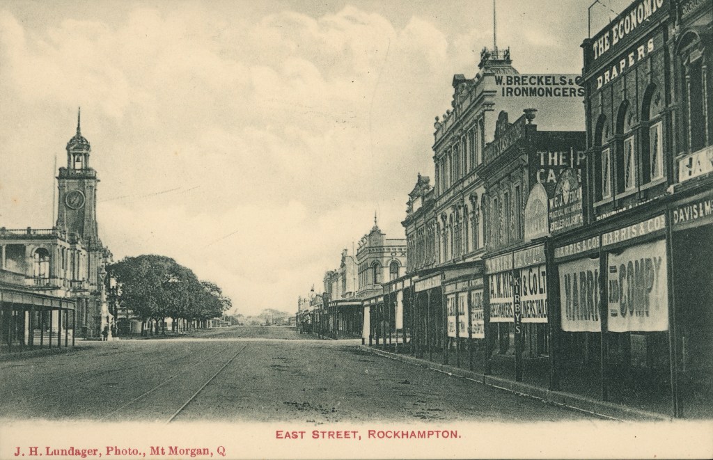 The Lundager studios were active in the Rockhampton and Mount Morgan regions in the late 19th and early 20th centuries. The images they chose for their postcards show Rockhampton as a tropical city with some stunning buildings, courtesy of that gold rush money.
