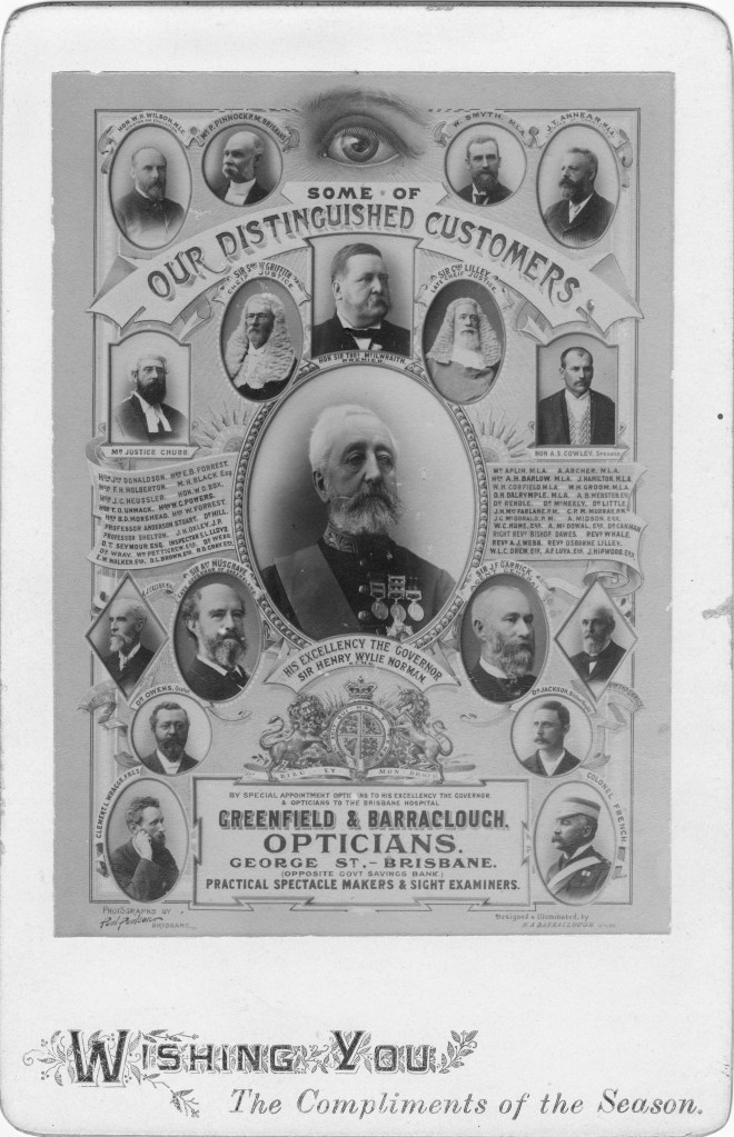 In 1893, Greenfield & Barraclough greeted its clients with a dazzling photographic collection of the eminent peepers they’d tended to. The nature of photographic portraiture of the time made most of the faces peer out of the photographs in an almost unnerving way. I think I prefer the pestilential emails from OPSM.