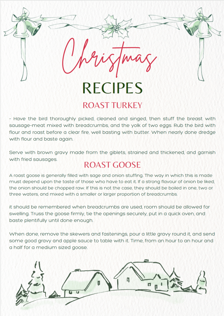 Mmm. Nothing like stuffing a turkey with sausage meat. And the goose recipe has tips for the cook who needs to serve people with incredibly exacting onion tolerance levels. (I chose the non-violent Capricornian goose recipe, because a few others involved plucking and singeing the goose, then breaking bones. Ain’t nobody got time for that.)