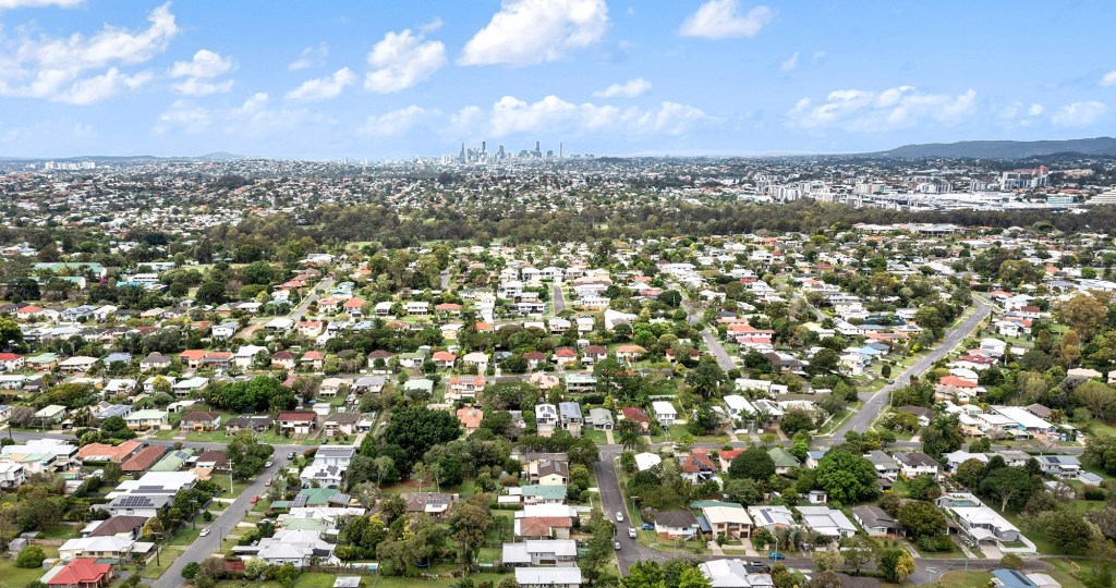 In 1959, a BCC photographer captured this old Gumdale home. Would he or she have been more concerned about the dogs or the poultry? Perhaps the carelessly-parked bicycle drew their attention.In the 1970s, the Brisbane City Council was back, recording a “kerosene tin house.” Presumably, this des res was constructed of kerosene tins? Sounds smelly, if not flammable. At any rate, the livestock were untroubled.Gumdale today, showing how leafy it still remains. No trace of unconventional building materials or carelessly-parked bicycles. (Domain real estate).