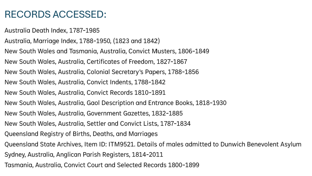 Sarah disappears from the records about Cornelius in the 1830s. She may have remained with Cornelius and stayed out of trouble, or she may have passed away. There are two women of that name listed as dying in the late 1830s in New South Wales.