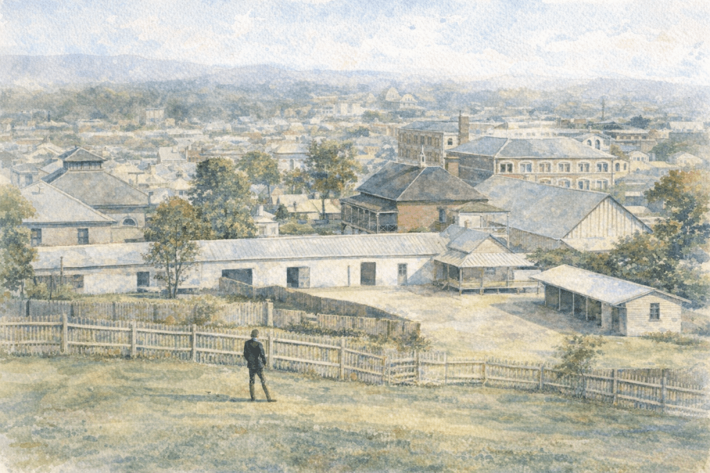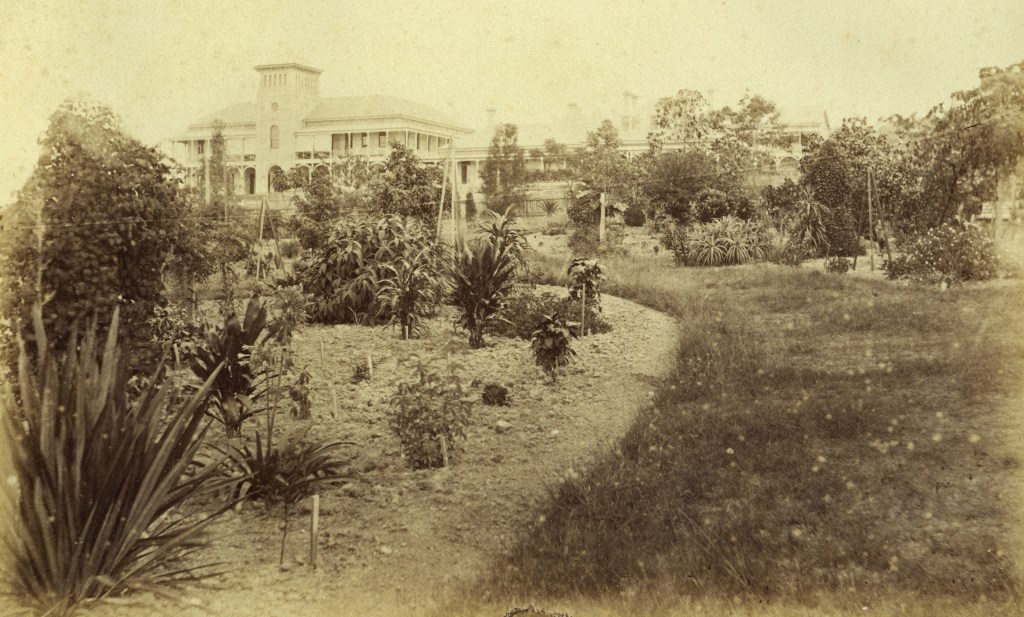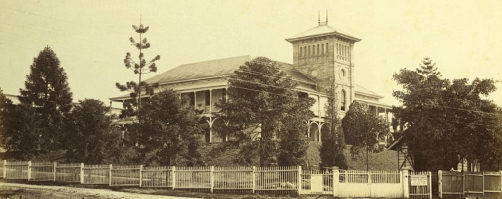 The first Brisbane Hospital, c 1865. (QUT Digital Collection).The Brisbane Hospital at Herston, 1885.1885 view of Brisbane including Lady Bowen Hospital (from an image in the State Library of Queensland).The Hospital from the Acclimatisation Gardens, 1875.