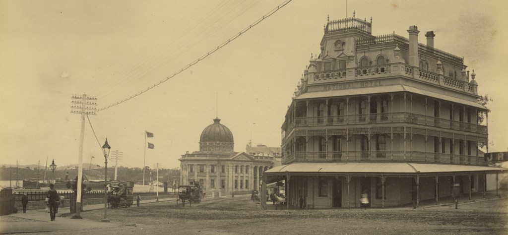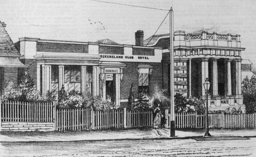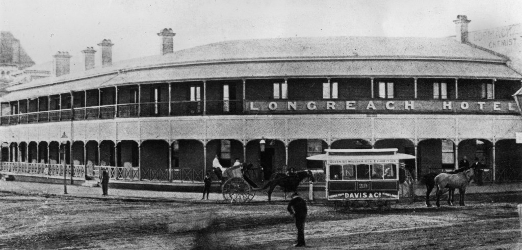 Adapted from image of Bellevue Hotel in the State Library of Queensland.The Queensland Club Hotel in 1884.Hotel National, Brisbane, 1890.Morse’s Excelsior Family Hotel, 1889.Longreach Hotel, 1890.