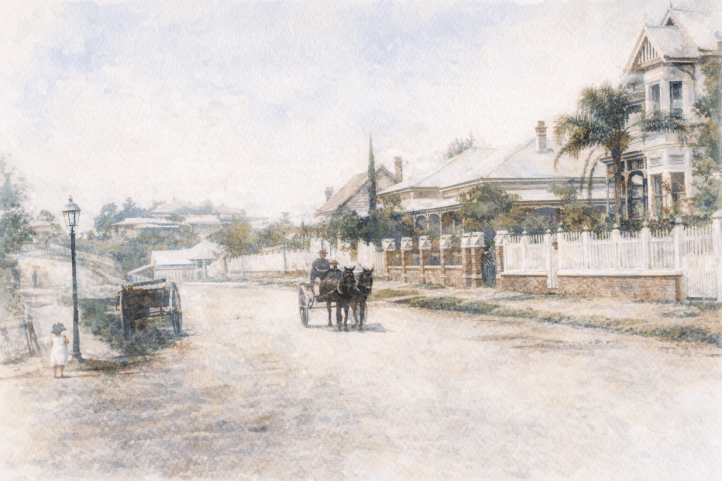 The Hamilton Reach of the Brisbane River, taken from a photo by Lomer.Self-explanatory, but after seeing it, I have spire envy. And verandah envy. And fence envy. And gate envy.Crowds in a holiday mood at Hamilton, 1906.Toorak House, Hamilton. (Queensland Heritage Register).Woolahra, Hamilton. (Queensland Heritage Register).Mrs MacFarlane’s Refreshment Kiosk, 1906.Hamilton and Brisbane River in flood, 1893.