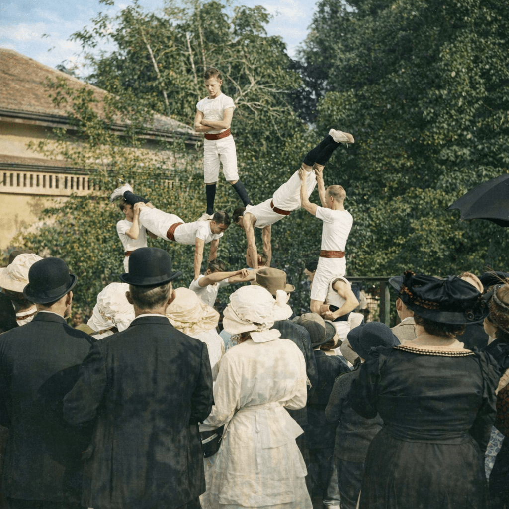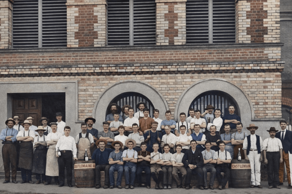 Congregational Church at Milton, erected 1889.Gymnasts perform at a fete in Gregory Park, in 1915.Fire demonstration at that fete.Staff of the Castlemaine Brewery at Milton, 1900.