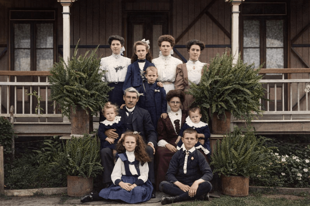 The Henderson Family in their pineapple field at Sunnybank, their farm at MacGregor. (Sunnybank was the name of the farm, and it in turn became the name of a suburb, but not this suburb. Shades of Kedron and Lutwyche.)The Henderson family in front of Sunnybank, their farm in MacGregor in 1913. The land the farm stood on is now the site of MacGregor State School.