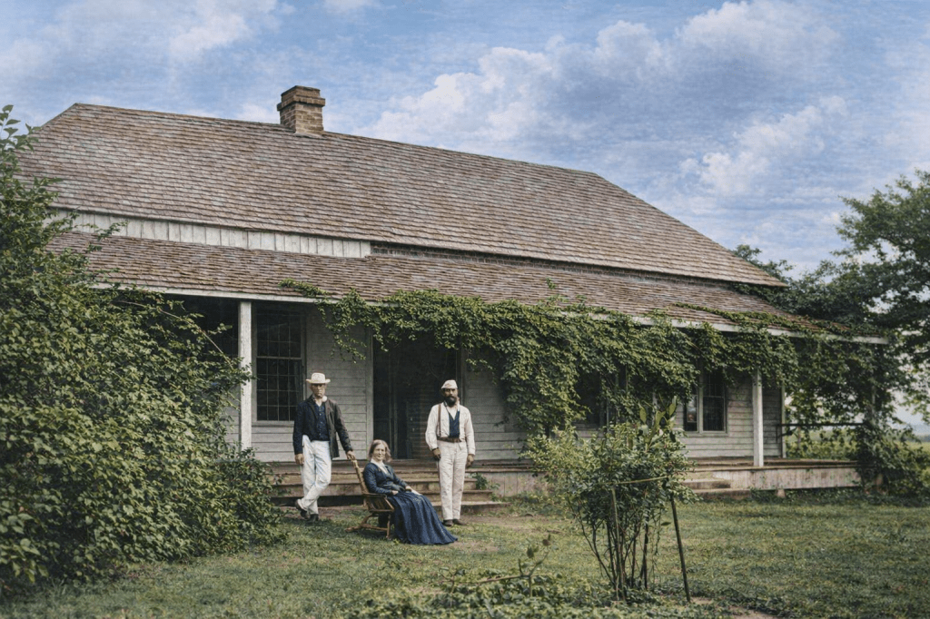 The Manning family at Milton House, c 1870. This was the home of Arthur Wilcox Manning, the Under Colonial Secretary, who had been attacked with a tomahawk in his office in November 1868. The attacker was a Police Magistrate about to be dismissed for embezzlement.From an early photograph of Bishopsbourne, showing the chapel adjoining it, c 1870.Relaxing on the verandah of The Poplars, 1895.