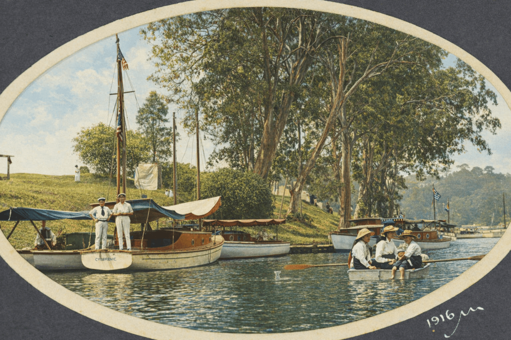 A quiet suburb by the river, host to many a pleasurable picnic or boating party in the early days.
