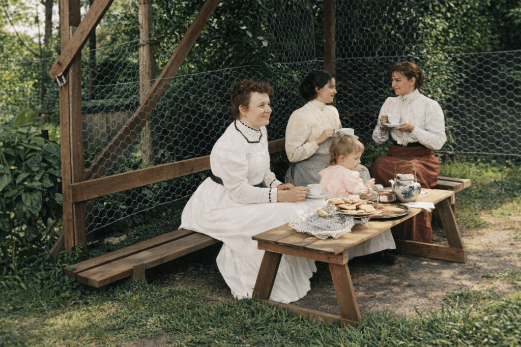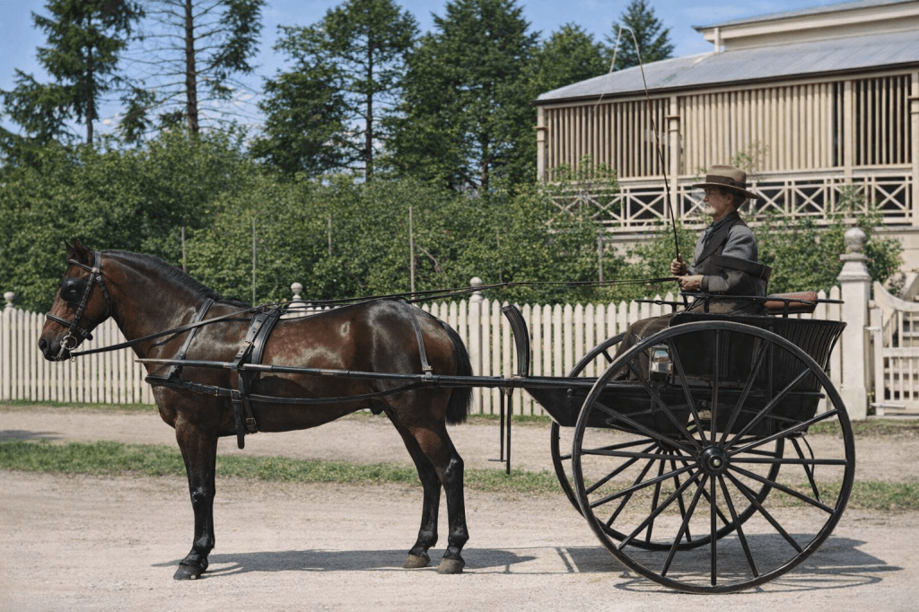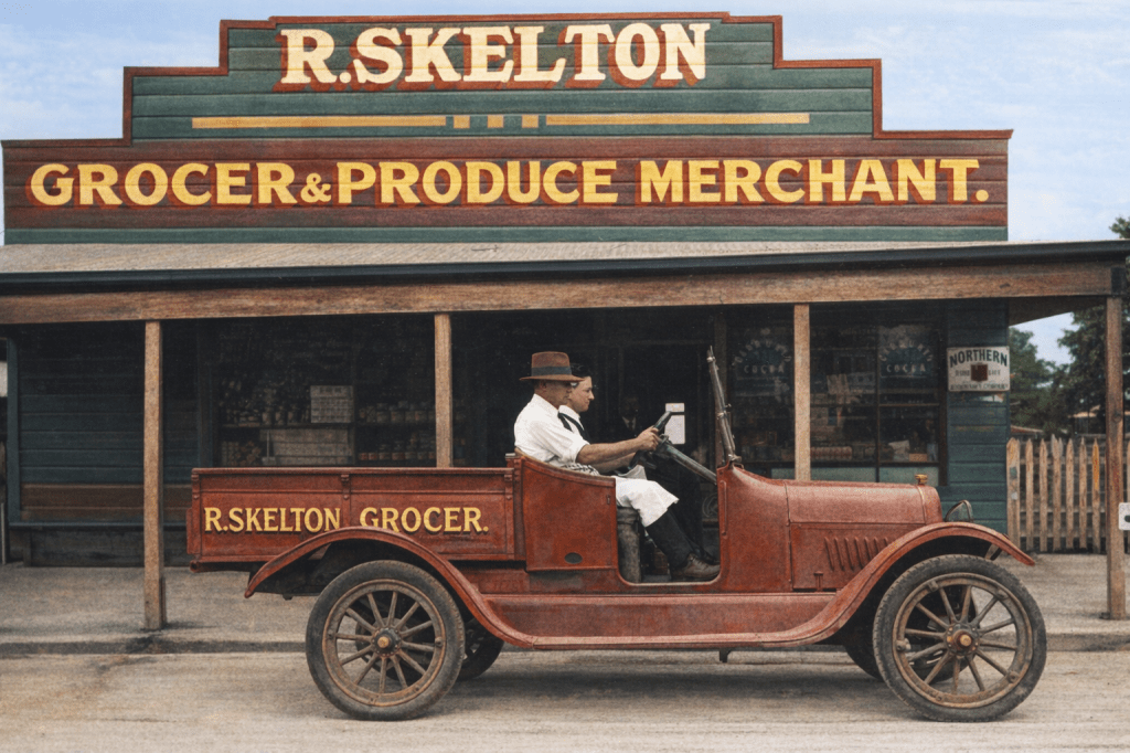 A fine day for a horse and buggy ride in Emma Street, Toowong, 1899.Ten years later, the trams were a regular fixture in Toowong. (Although the chap at the back would rather like to get to town soon, please.)Sometimes, only real horsepower will do. Here’s a horse team pulling a log jinker in High Street, Toowong in 1920.And here’s Mr Skelton in his grocery van outside his shop in 1920.And, lastly, there’s always time for a good cup of afternoon tea (in Toowong in 1900).