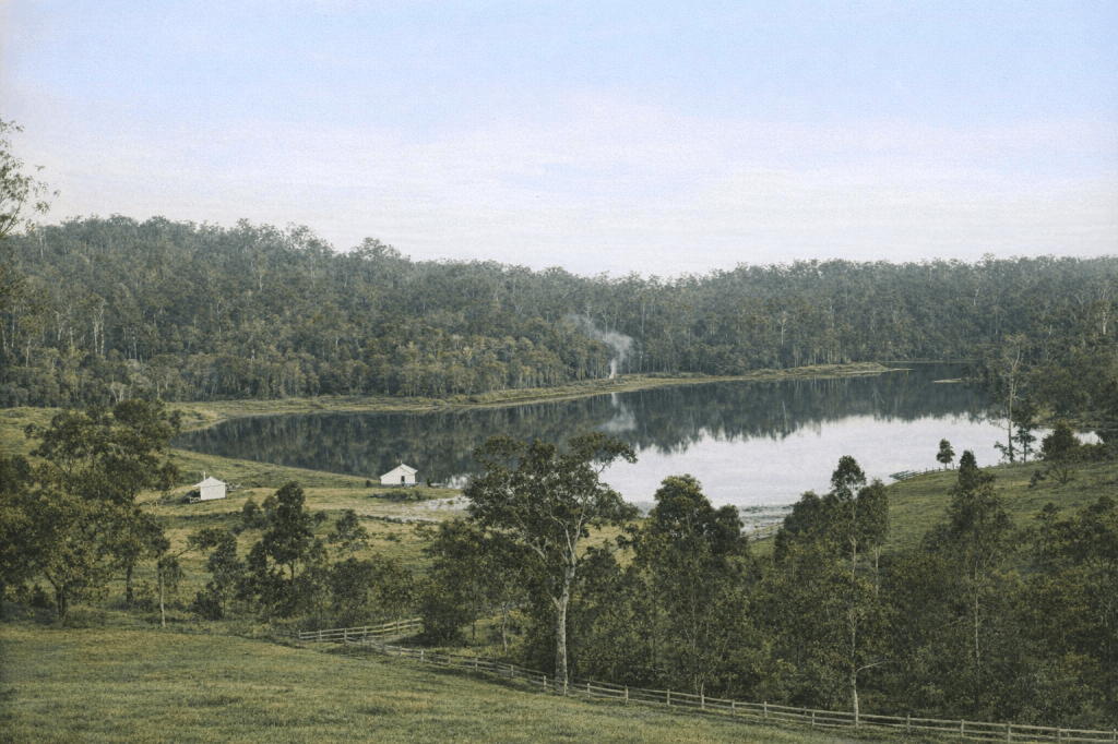 Enoggera Reservoir at The Gap in 1888.A creek on the road to the Waterworks in 1890.Walton Bridge at The Gap, before it was destroyed by the- you guessed it – 1893 flood.