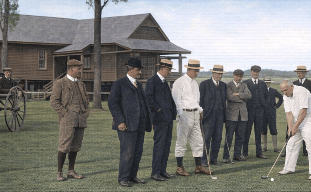Golfers at the Brisbane Golf Club, Tennyson in 1906. Once chaps started getting around in their shirtsleeves, the whole world was in danger of collapse.